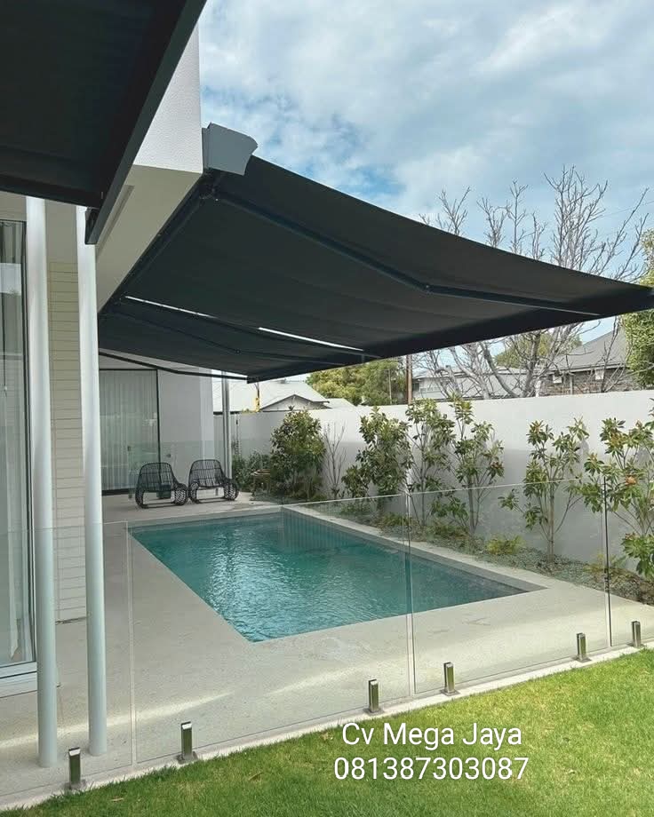 Cv Mega Jaya Specialis jasa pembuatan atap kanopi alderon untuk rumah dan ruko anda agar terlihat lebih estetik dengan kombinasi plafon PVC, kami juga menyediakan kanopi kaca pempered untuk model rumah minimalis menyesuaikan bentuk rumah anda, harga mulai Rp 650,000/meter.
