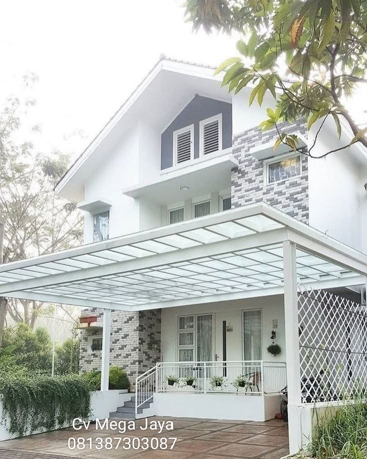 Cv Mega Jaya Specialis jasa pembuatan atap kanopi alderon untuk rumah dan ruko anda agar terlihat lebih estetik dengan kombinasi plafon PVC, kami juga menyediakan kanopi kaca pempered untuk model rumah minimalis menyesuaikan bentuk rumah anda, harga mulai Rp 650,000/meter.